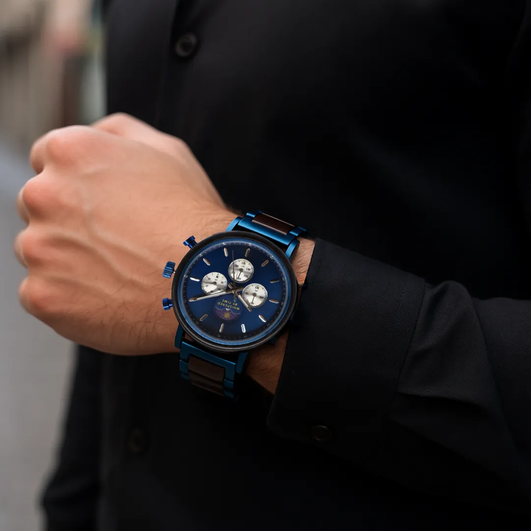 Funzioni: Ora (3 lancette), cronometro, cronografo, fase lunare