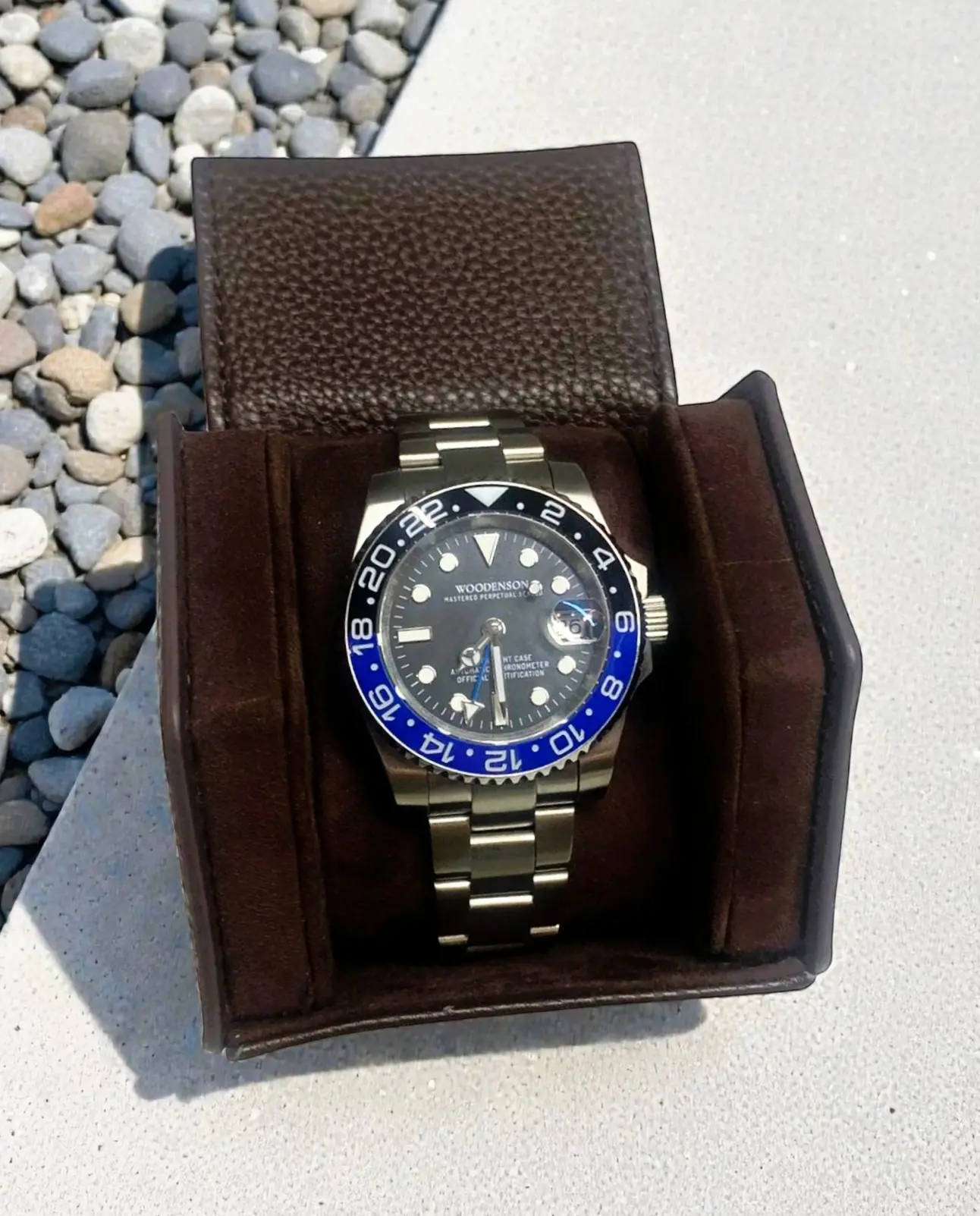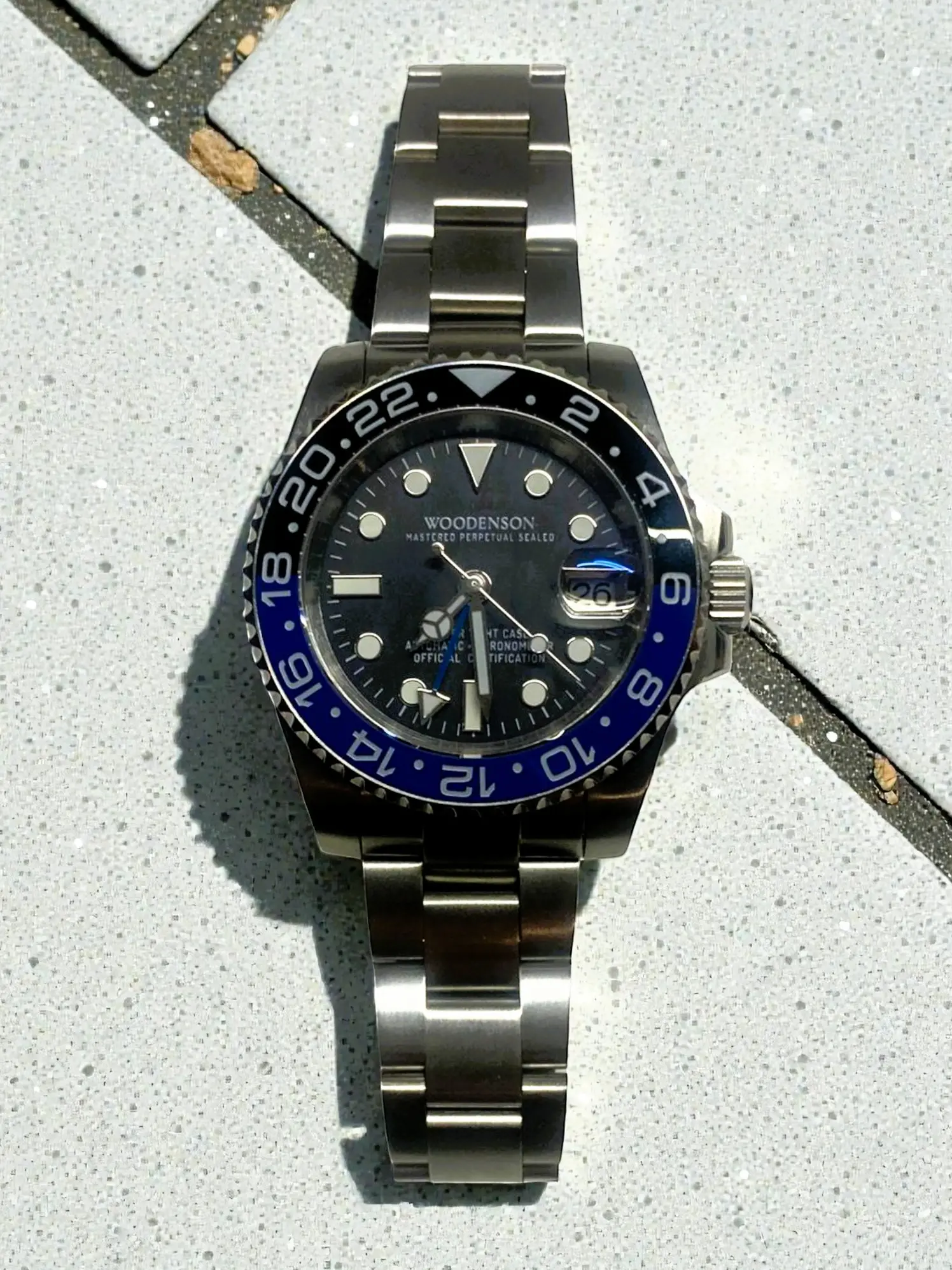 Funzioni: Ore, data, GMT (3 lancette + lancetta aggiuntiva GMT)