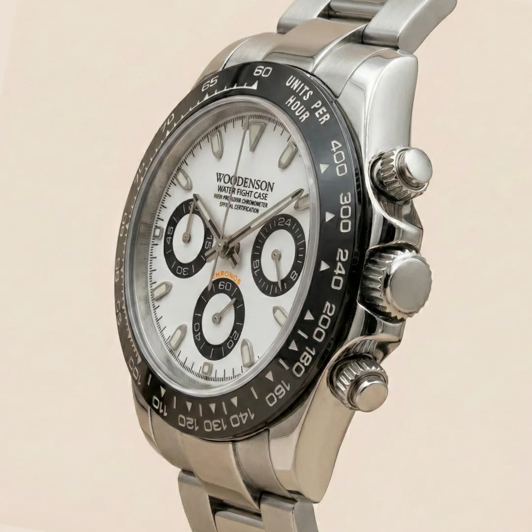 Funzioni: Ore (3 lancette: ore, minuti, secondi), cronografo funzionale